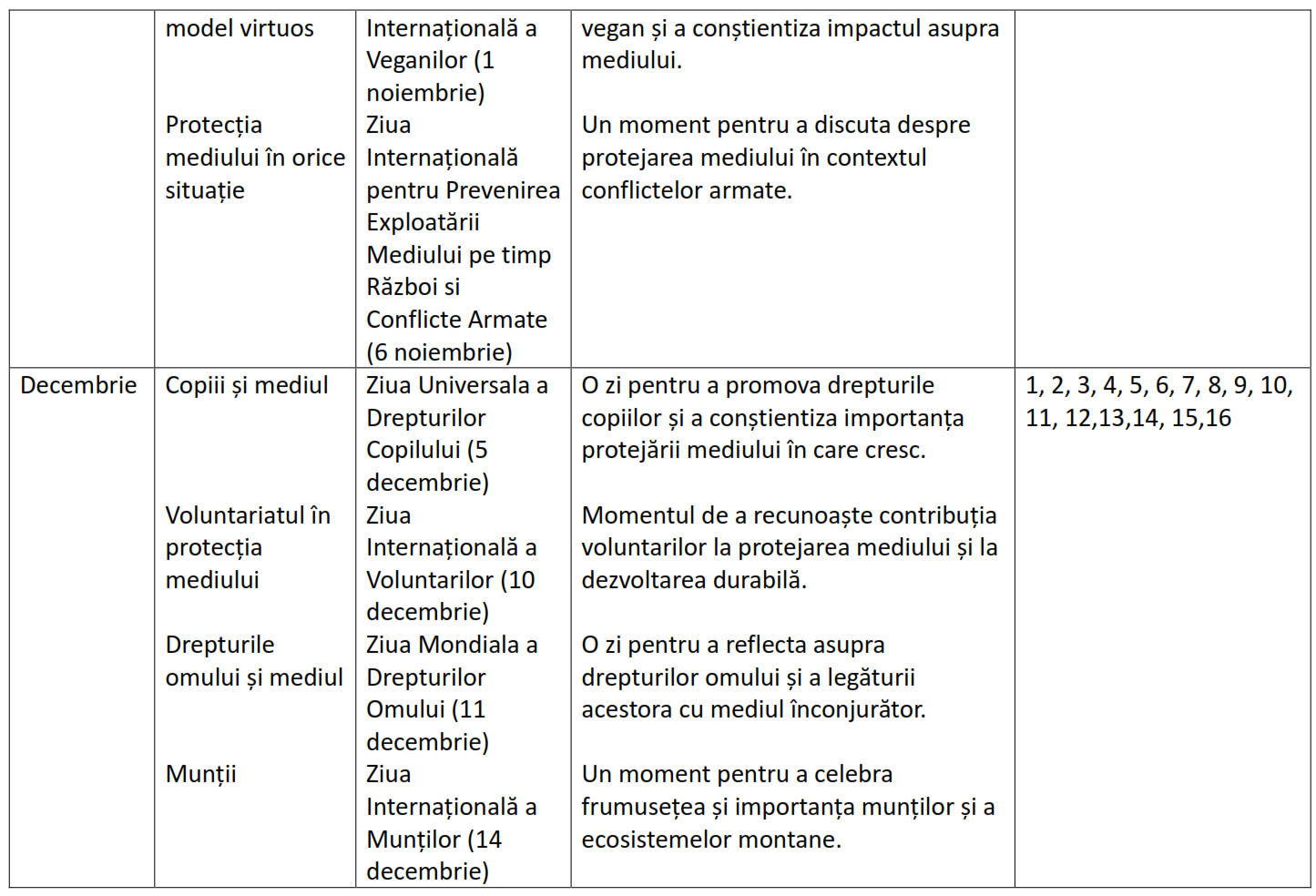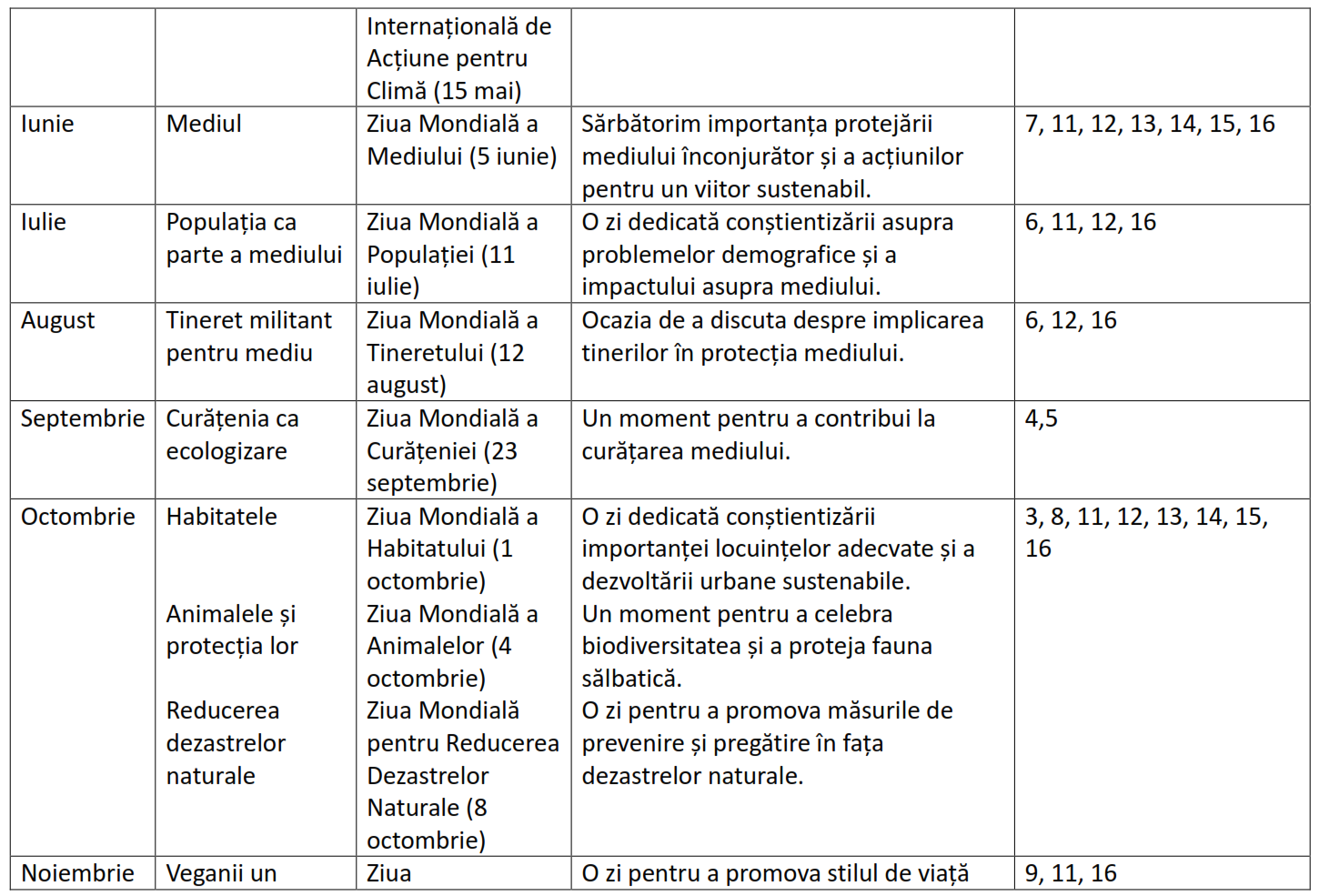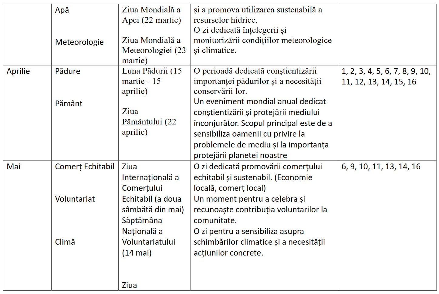Calendar Conștientizare privind Protecția Mediului Țițești